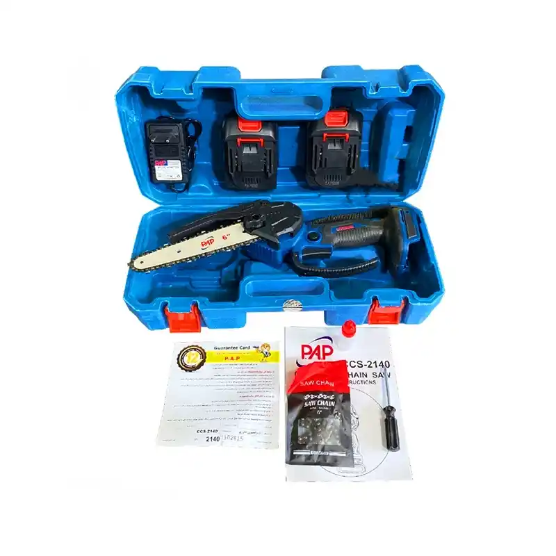 به همراه زنجیر اضافه و جعبه BMC , باطری و شارژر حداکثر قطر برش : 150 میلی متر سرعت حرکت زنجیر : 10 متر بر ثانیه ظرفیت باتری : 3000 میلی آمپر - 21 ولت